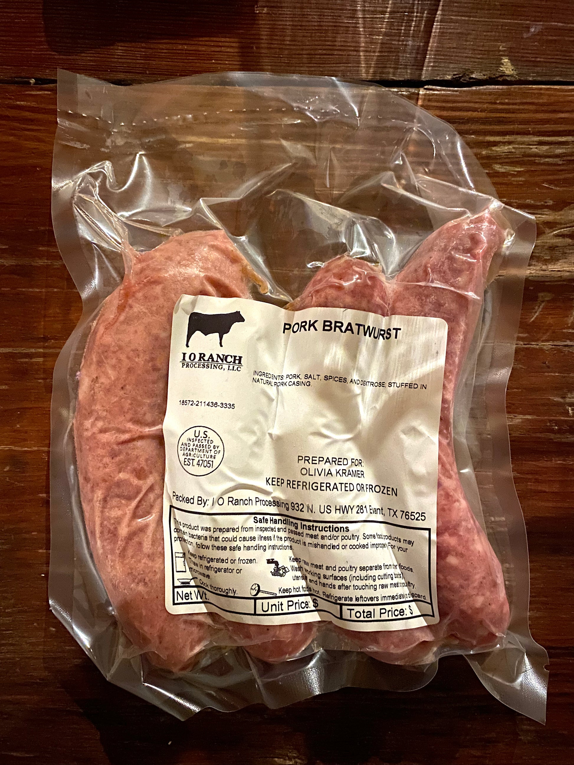 Ingredients: Pork, salt, spices, dextrose, natural pork casing
