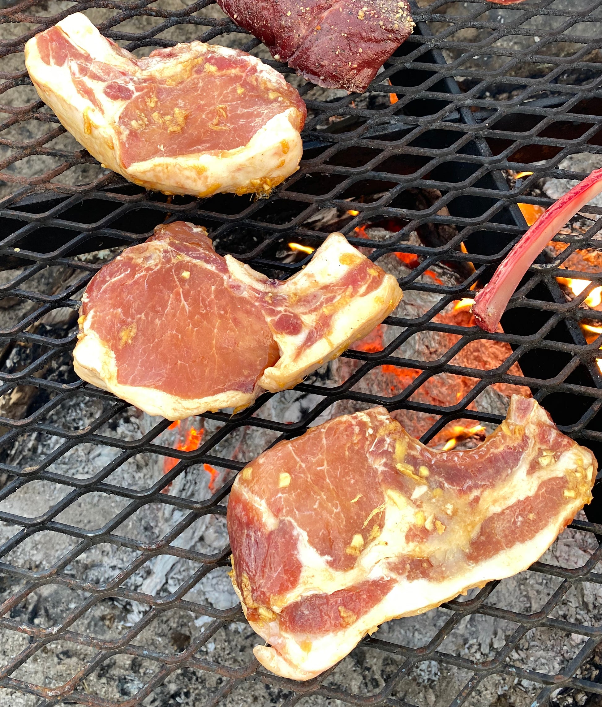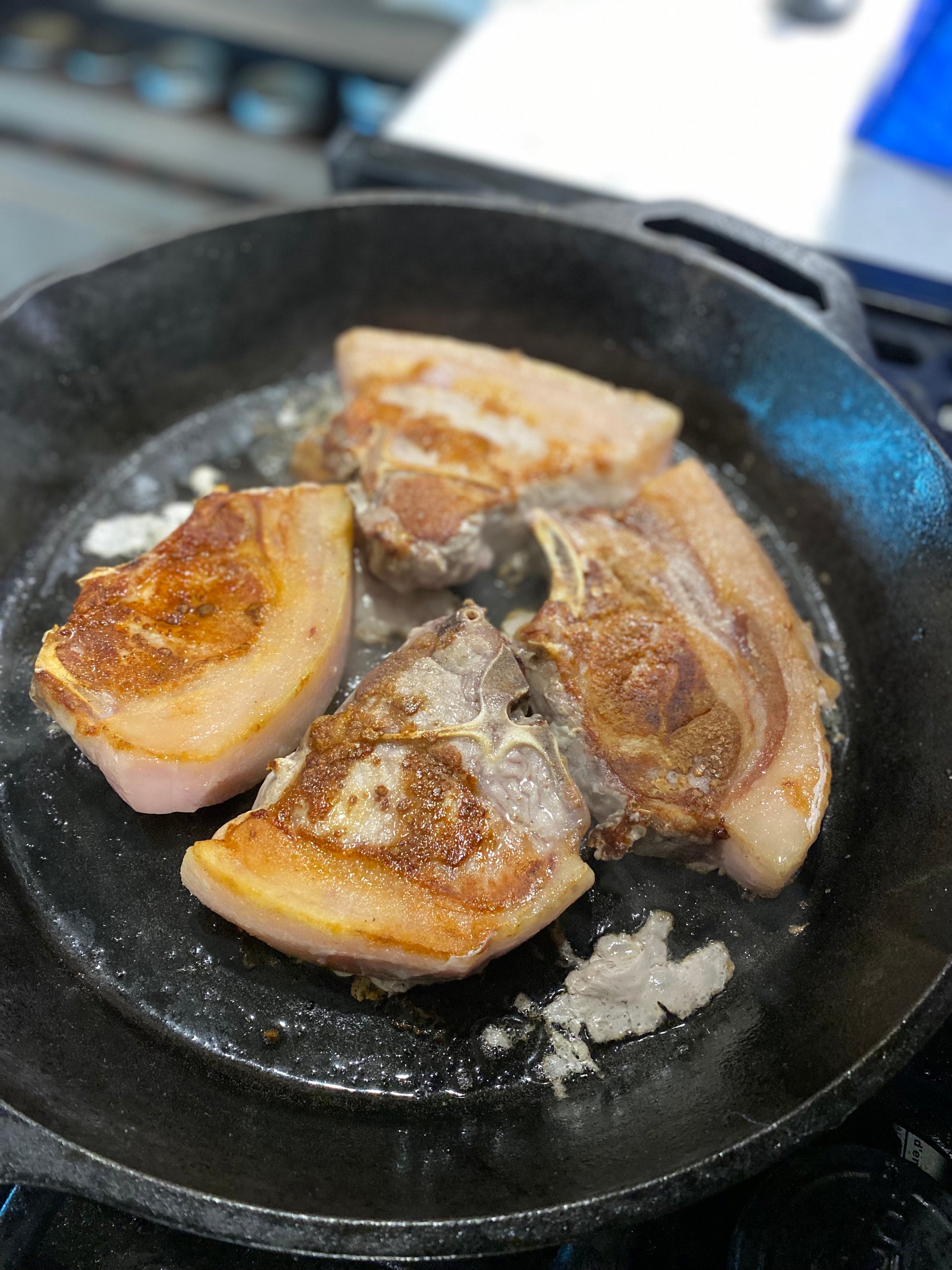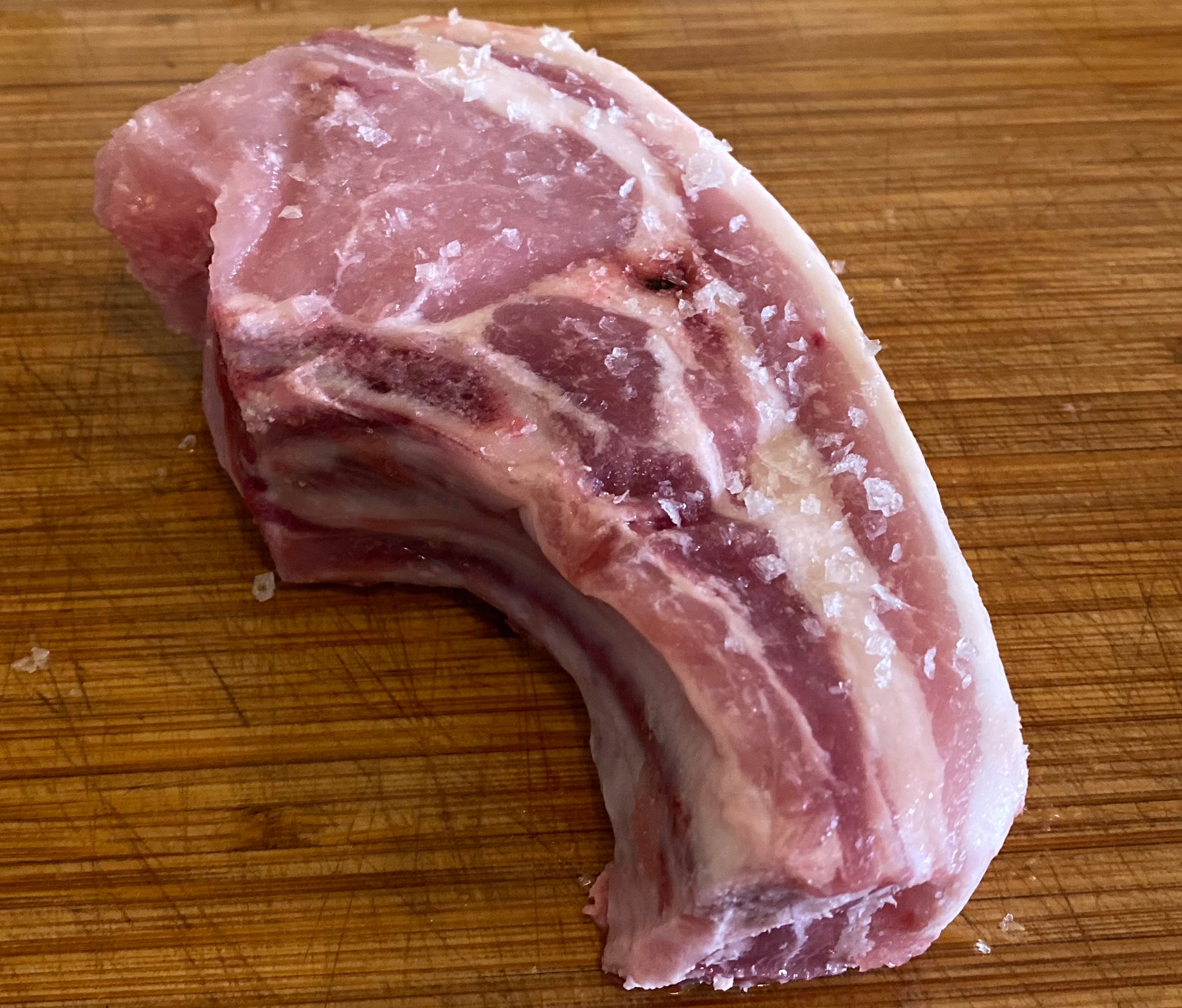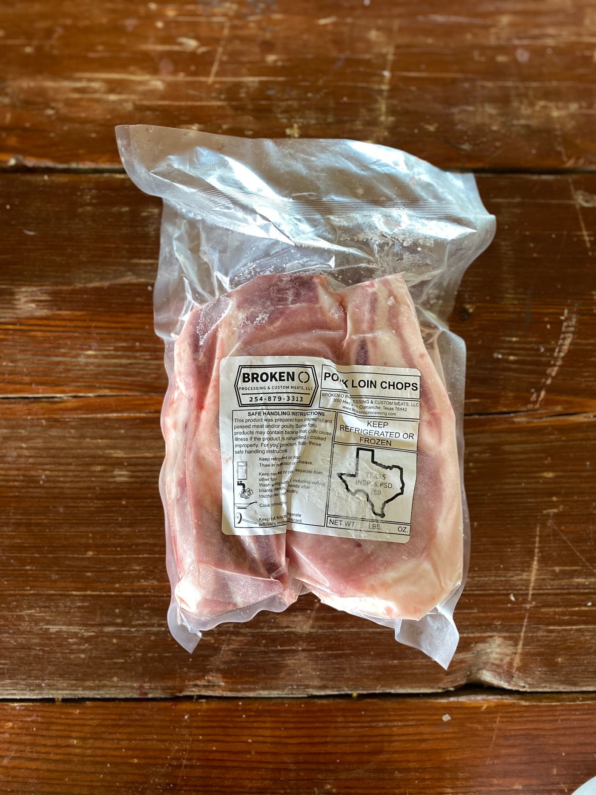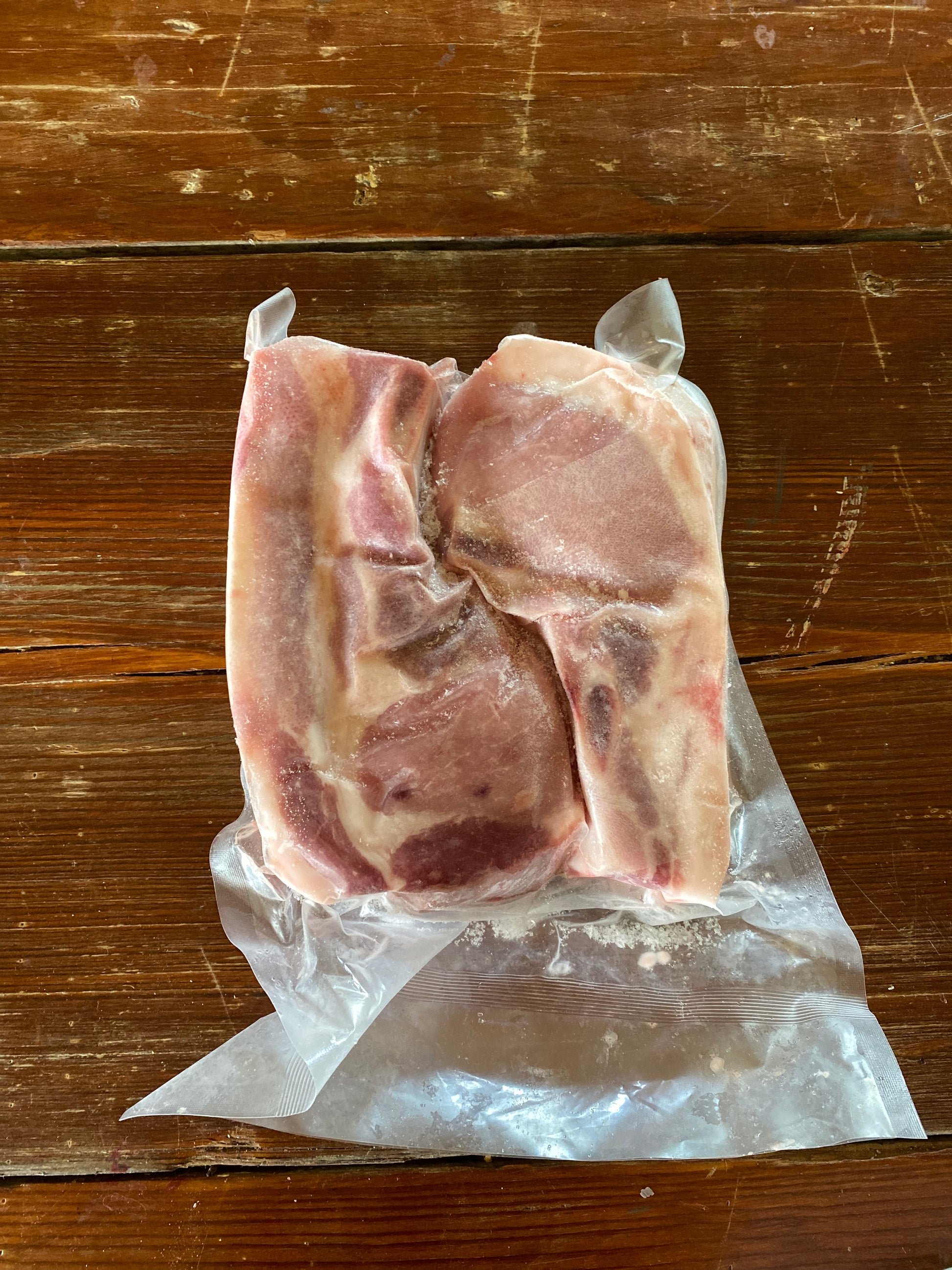 Juicy pork chops from our heritage breed pastured pigs! A thick fat cap keeps the meat tender and flavorful. Easy to dress up or down - a simple sear in a cast iron pan with a sprinkle of salt is the perfect way to showcase this cut.